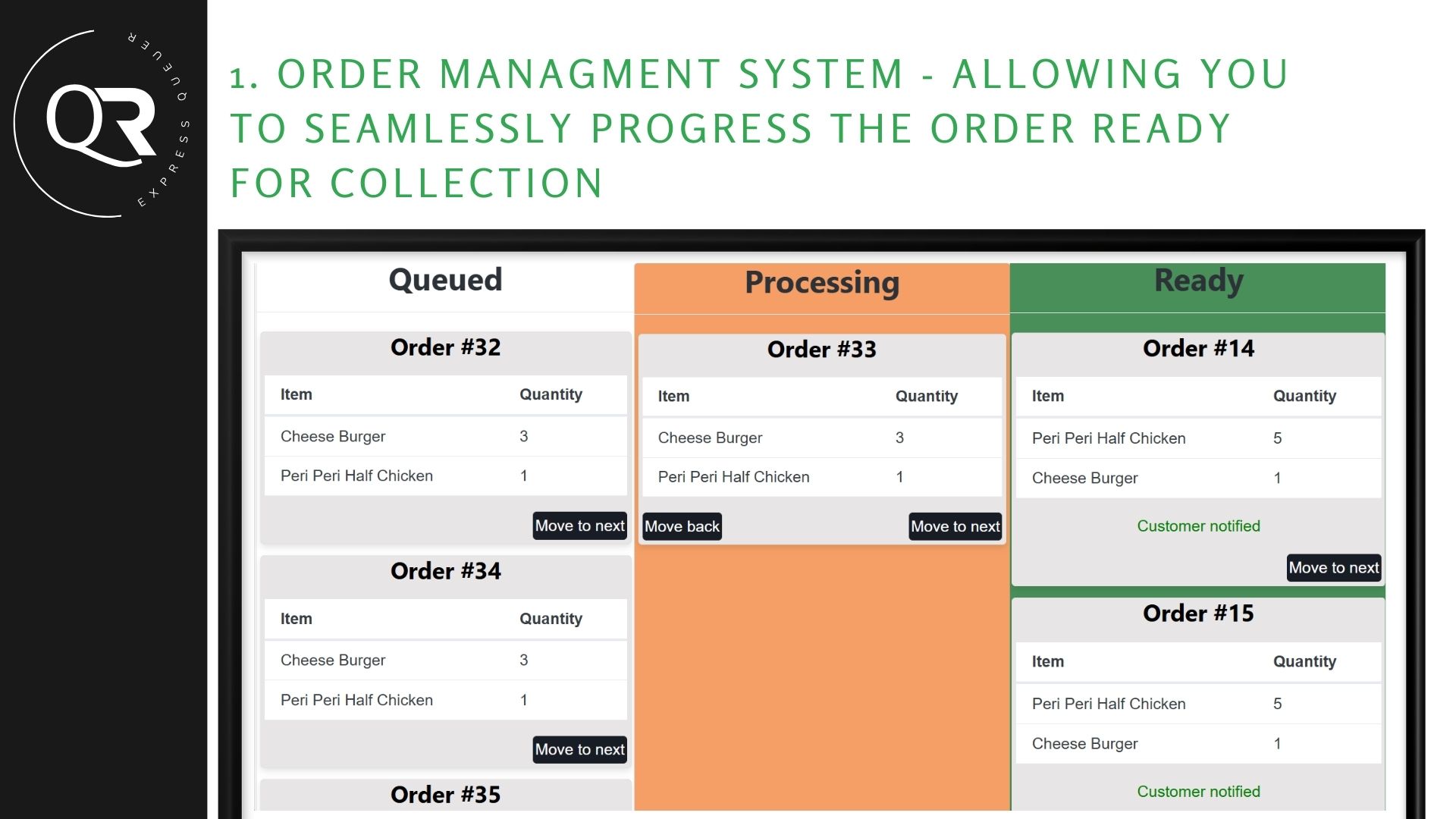 Track orders and notify customers when ready.